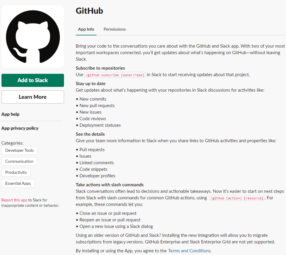 대강의 내용을 살펴보면 새로운 commit, pull request, issue, code review, deployment statuses와 같은 활동들이 일어날 경우 슬랙에서 확인해 볼 수 있다는 것이다.