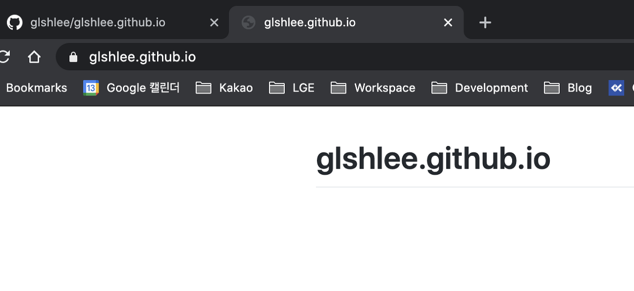 Repository를 생성한 뒤 주소창에 repository 이름을 입력하면 다음과 같이 블로그가 만들어진 것을 볼 수 있습니다.