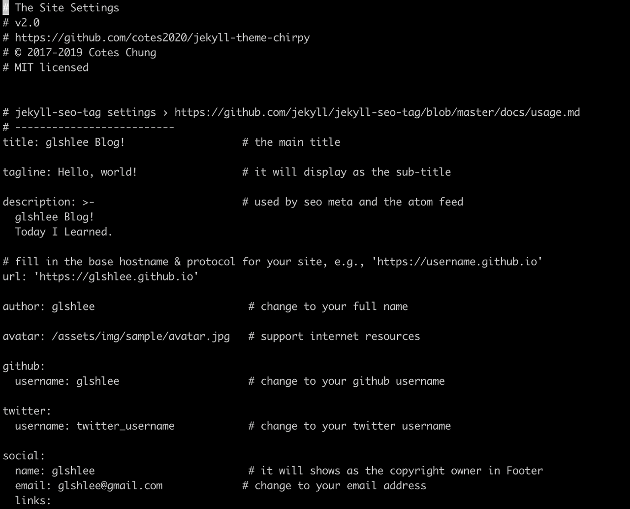 여기서 살펴봐야 할 파일은 _config.yml file입니다.