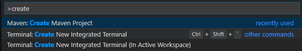 shift + command + p (Ctrl + shift + p)를 입력하고 다음의 순서로 Maven project를 생성한다.